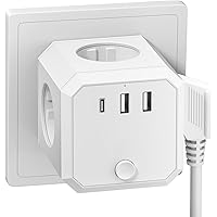 Steckdosenleiste Würfel mit USB, Steckdosen (4000W/16A) mit Schalter, Steckdosenadapter mit 2U1C (5V/3.1A) für Büro, Zuhause, Weiß